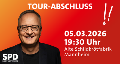 Unser Spitzenkandidat Andreas Stoch war in den vergangenen Wochen in allen 70 Wahlkreisen unterwegs. Er hat mit den Kandidierenden an hunderten Türen geklingelt, die „Hidden Champions“ unseres Mittelstands besucht und in 29 Townhalls seine Vision eines gerechteren Baden-Württembergs geteilt. In Mannheim findet die „Tour für Dich“ nun ihren Abschluss.