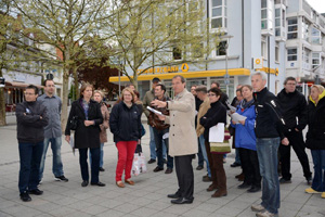 Stadtführung mit OB Klaus EberhardtDer Masterplan für die Rheinfelder Innenstadt interessiert: Nicht nur SPD-Fraktionsmitglieder, sondern auch eine Anzahl von Bürgern begleiteten Oberbürgermeister Klaus Eberhardt bei einem Stadtrundgang und ließen sich vor Ort die Überlegungen zur Stadtentwicklung erläutern.