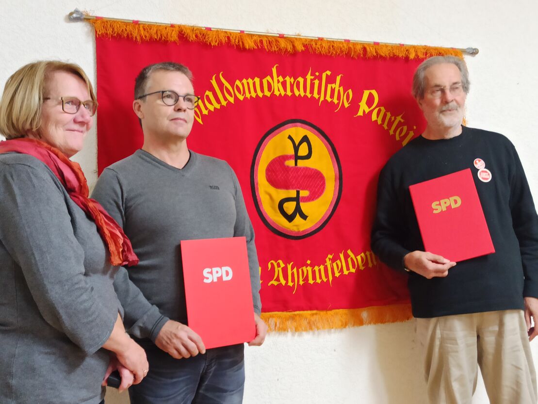 Als Einstimmung auf die Ehrungen erinnerte Dr. Wolfgang Bocks an die knapp 100 jährige Geschichte der SPD-Traditionsfahne, die während der Nazizeit nach Verbot der SPD 1933 in die Schweiz geschmuggelt worden war und 1948 zum ersten südbadischen Landesparteitag zurückgeholt wurde.